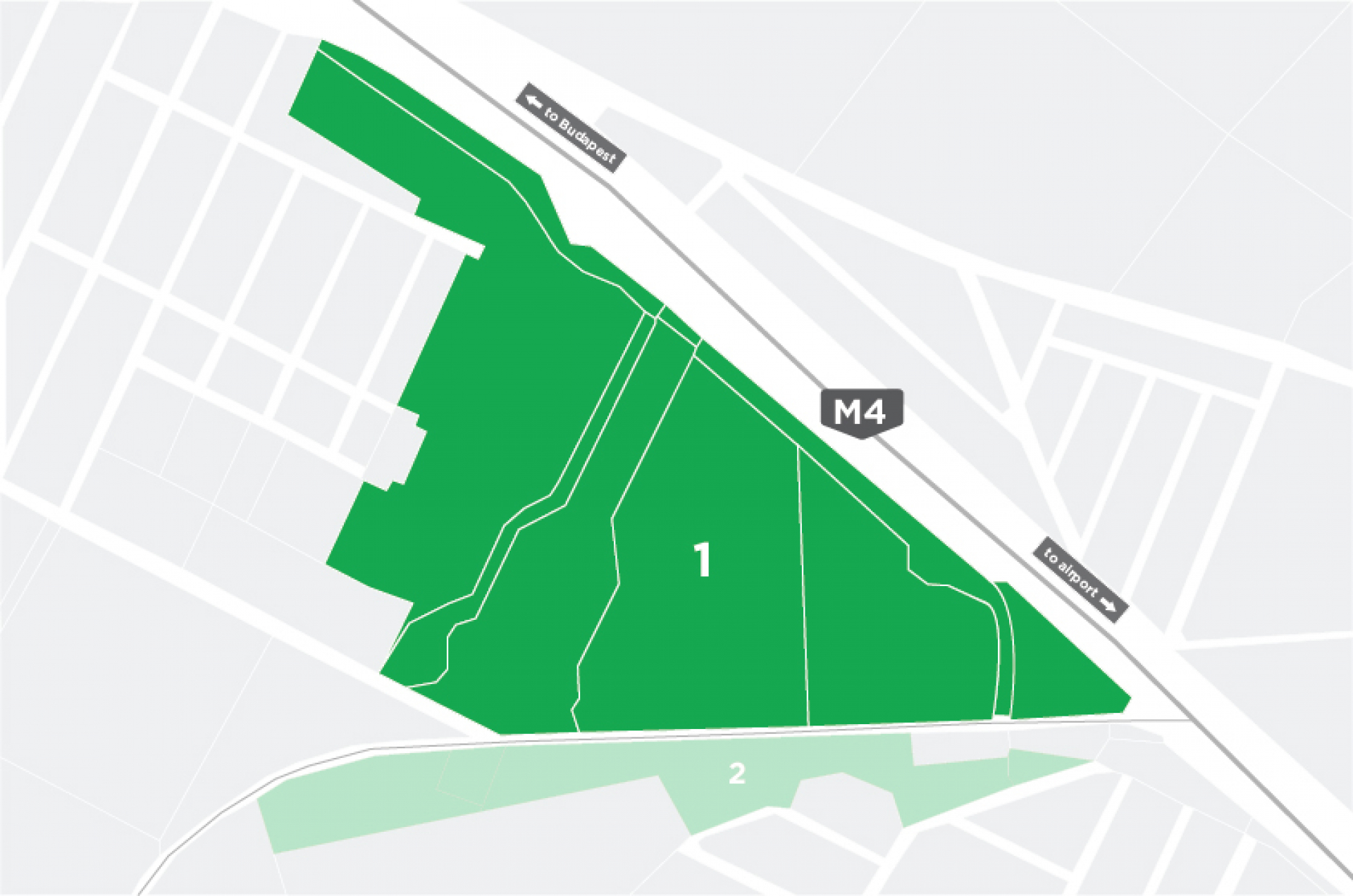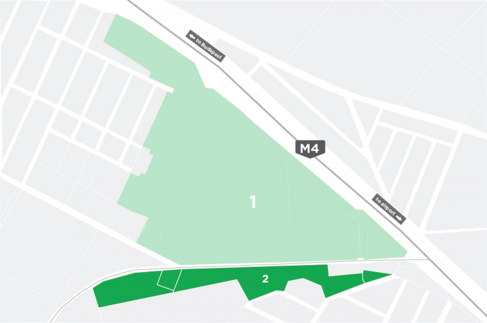 The site is located in the 18th district of Budapest, next to the expressway to Ferihegy Airport. The area is bounded by Ferihegyi road, Honvéd street, József Attila street and Székely György street. The plot is not connected to roads and utilities. The two different zoning areas are to be sold together (approx. 42 ha).