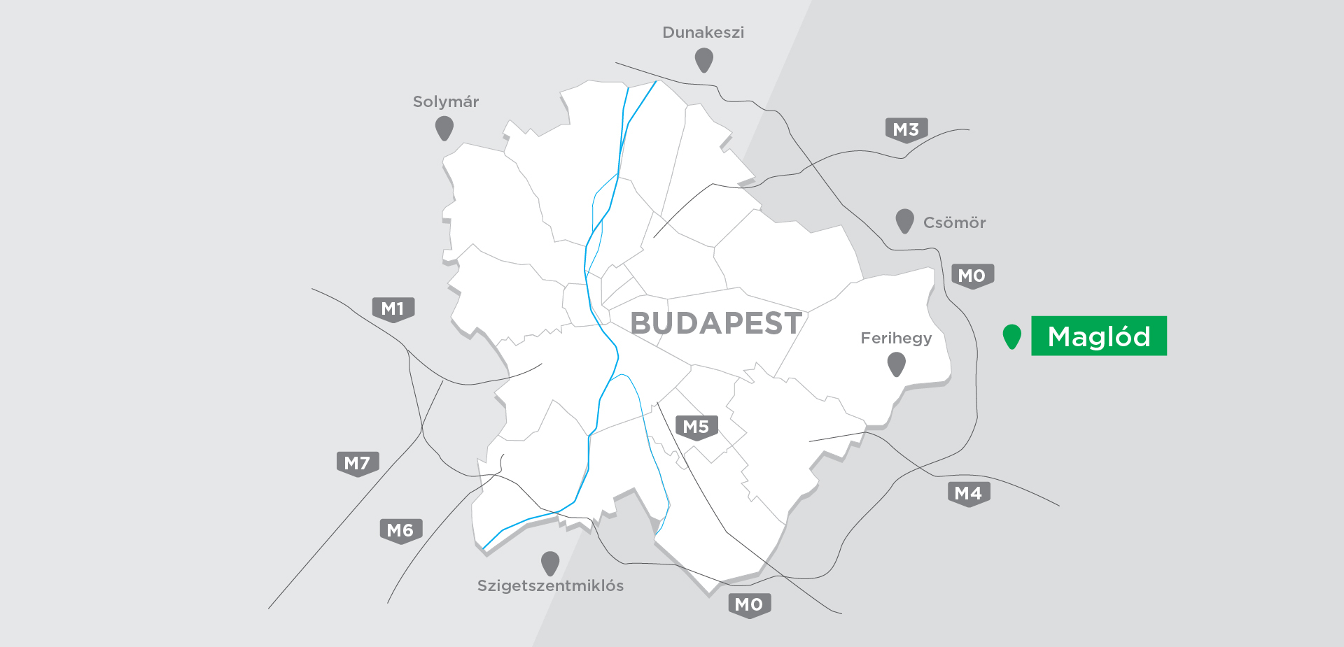 The development area is located next to the M0 motorway, near Háros road and II. Rákóczi Ferenc road connecting Szigetszentmiklós and Csepel, in the Auchan Commercial Park. It is surrounded by the Auchan hypermarket, Bauhaus, various industrial and commercial sites, and the Leshegy Industrial Park. The internal road network of the commercial park passes in front of the group of plots, where the utility backbones are available, but depending on the plot allocation, internal road construction works may still be required at individual plots.